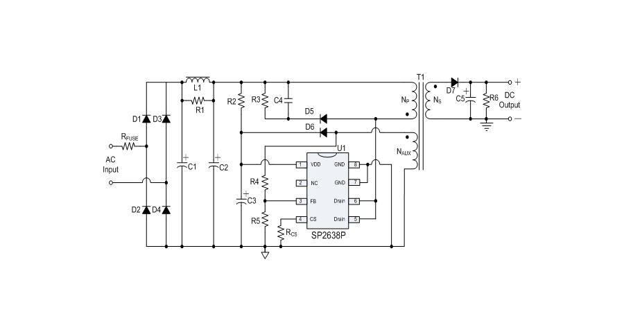 SP2638P是一款性能優(yōu)異的原邊反饋控制電路,應用于小功率AC/DC充電器與適配器。控制電路使用原邊采樣技術進行精確的恒流、恒壓控制,可以省去一般應用中的光耦與TL431。